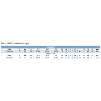 Blue Nr. 17: 26 points (4/8 3PM), 7 rebounds, 10 assists, 1 block vs RAMAT HASHARON